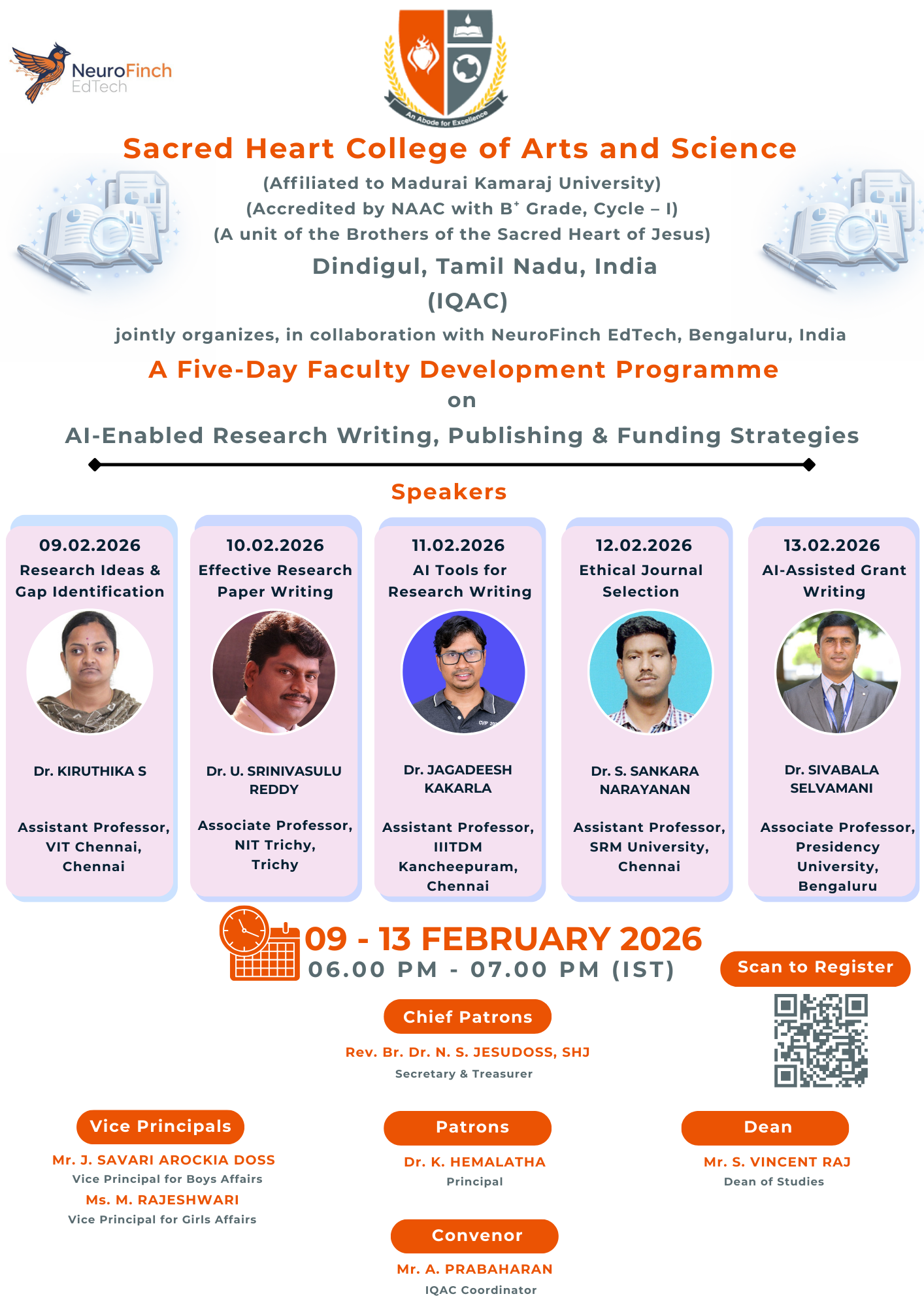 This FDP is intended for faculty members, research scholars, industry practitioners, and postgraduate students from Computer Science, Information Technology, Artificial Intelligence, Data Science, and allied disciplines who aspire to strengthen their research, writing, publishing, and funding capabilities using AI-enabled tools and methodologies for academic, research, and professional growth.